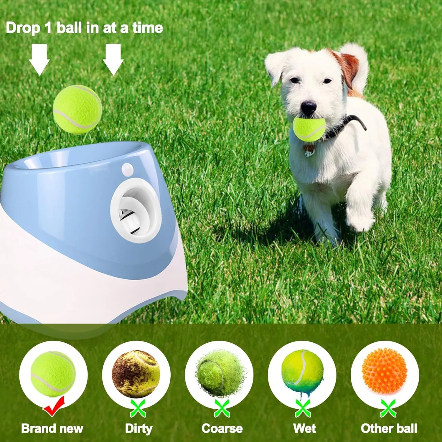 - 12Pcs Tennis Balls:-Automatic tennis ball launcher for dogs comes with 12packs 2-inch tennis balls, perfect for continuous play. This dog ball launcher ensures your dog always has a Interactive dog ball on han,making playtime safe and enjoyable for your petite pup.